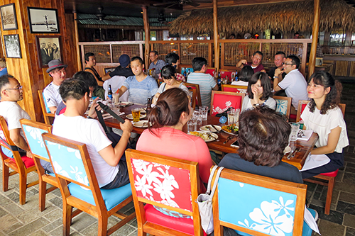一度、ハイアット・リージェンシー・ワイキキの JALPACK アロハ・ラウンジに戻り、到着していた第二班と合流。カラカウア通りを徒歩でランチ会場の