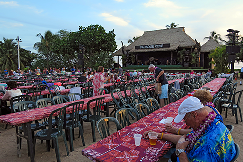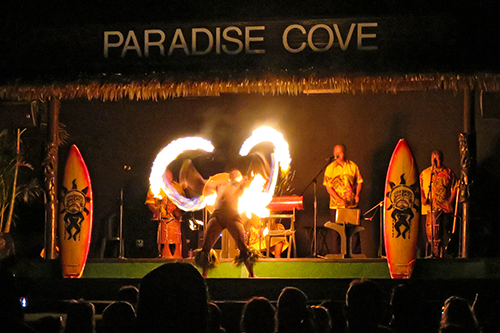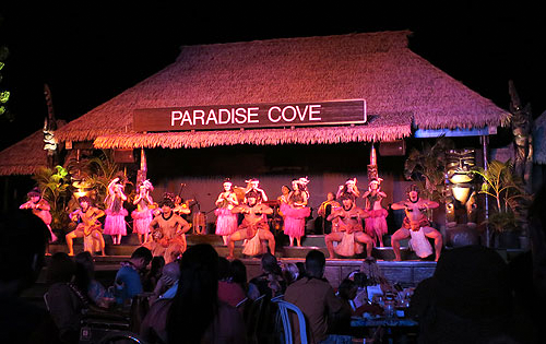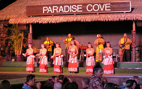 パラダイス・コーブ・ルアウのルアウはハワイ語で宴(うたげ)の意。宴会場を見渡しても日本人観光客は我が同胞のみ、ほとんどが欧米からの観光客のようだ。