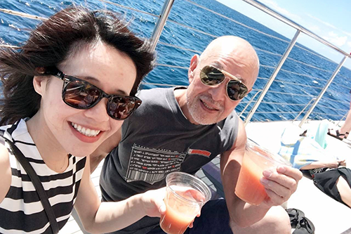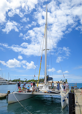 空が今日は絶好のスノーケリング日和になると言っている。お世話になるヨットは双胴のHoni Olani 号。