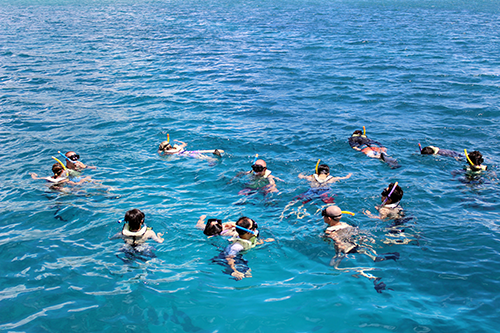 | 泳ぎの達者な人もそうでない人も一緒にウミガメ探し。 |