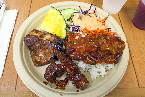 9月19日┃9月20日┃9月21日┃9月22日┃地図 カネオヘ湾クルーズ│ランチ│四輪バギー│ジャングル探検ツアー│サンセット・クルーズ 【9月21日(水)】 ランチ 11時少し前にクアロア・ランチに戻る。