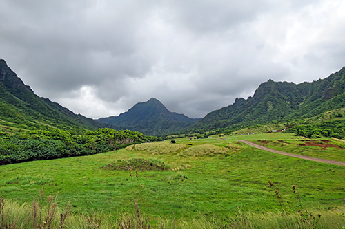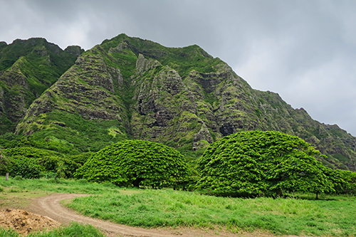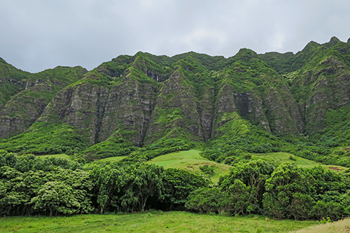 | 特徴のあるコオラウ山脈の山肌が間近。 |