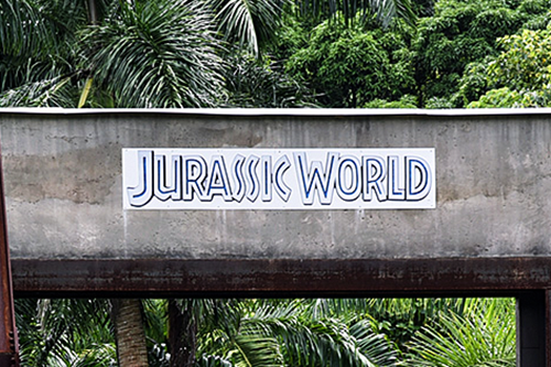 | 入り口上の"JURASSIC WORLD"の文字。 |