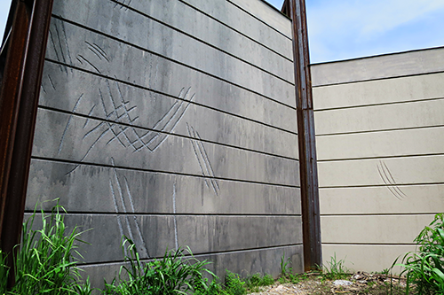 入り口壁の裏側にはティラノザウルスの爪痕が。