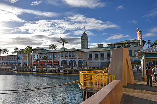 | アロハタワー(中央)とマーケットプレイス(手前)。 |