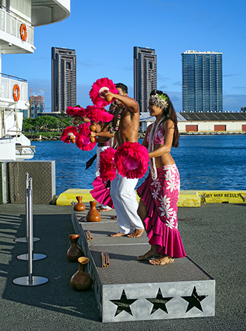 ウエルカム・ダンスの出迎えを受けて船内へ。