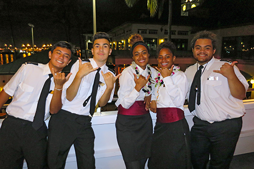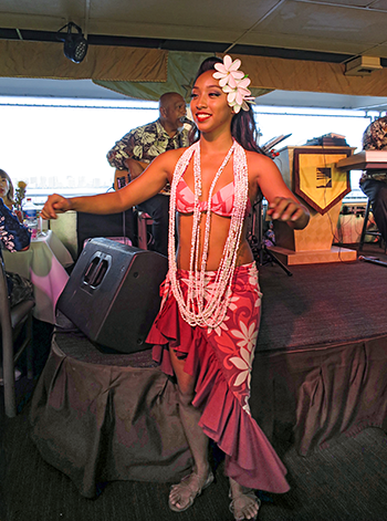 | 割れた腹筋が印象的なフラ・ダンサー達。 |