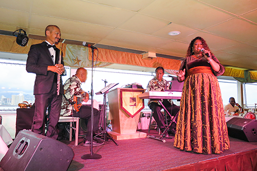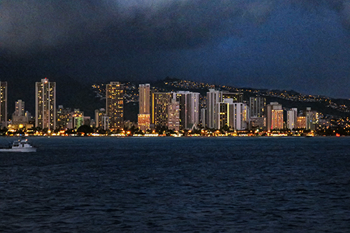 デッキに出ると "Star Of Honolulu 号" が浮かぶママラ湾の対岸は夕映えの夜景。