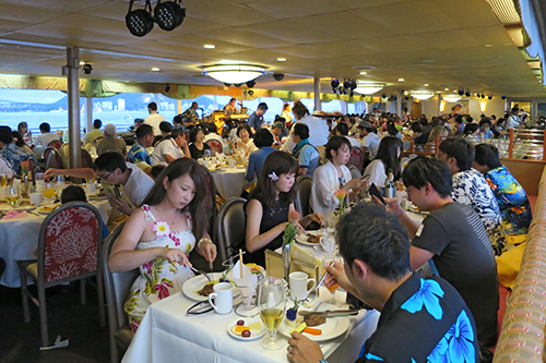 | 宴たけなわのダイニングはアジア系の乗客ばかり。 |