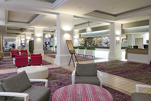 | 一階ロビー。右手奥がフロント・カウンター。 |