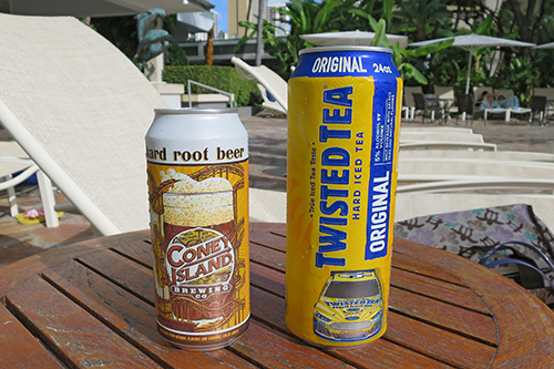 | スタッフに持ち込みは "No!" と言われてしまった Coney Island と Twisted Tea。 |