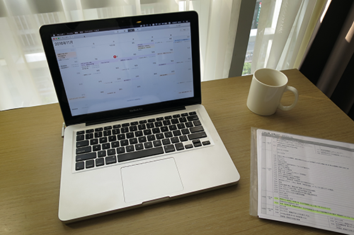 朝のシャワーを浴びてから今日一日の予定を確認。