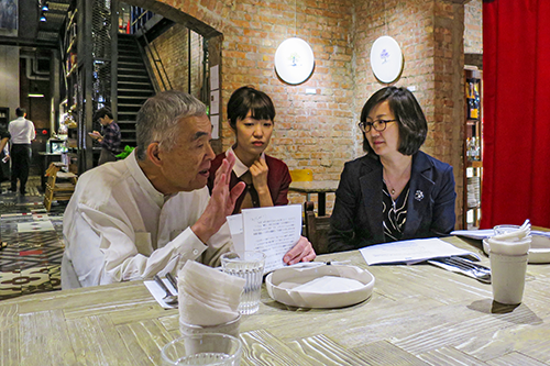 記者発表後、台北のデザイン誌 "Design" の編集者・蕭富藍(Fran Hsiao)さんの取材を受けるため好様思維餐庁に移動。