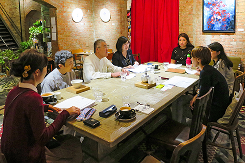 会場裏手にある好様思維餐庁に移動して慌ただしく昼食を済ませ、引き続き通訳との打ち合わせ。