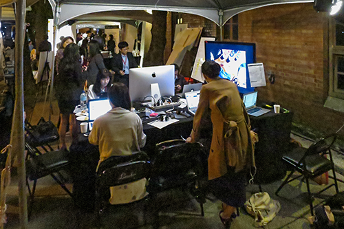 テントの一角では台湾スタッフが会場内をモニターしながら、セミナーの様子を Facebook や Twitter に逐一アップしていた。