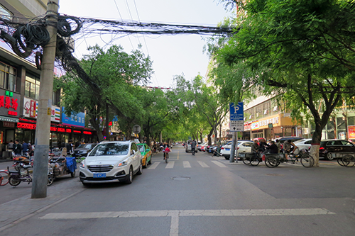 ホテルを出ると直ぐに喉がカサカサしてくるのは、朝から空をうっすら黄色くしている黄砂かPM2.5のせいか。ホテルを出て西大街に入りワンブロックほど西に歩いて竹笆市街(道路名)に入る。