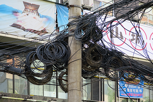 直ぐに目についたのが電柱の上でトグロを巻く同軸ケーブル、ホーチミンでも似たようなとぐろを見たが、これはインターネット回線だろうか。