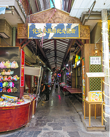 西羊市街を進んで行くと入り口に「化覚巷旅游記念品街」と標示のある路地を見つけた。
