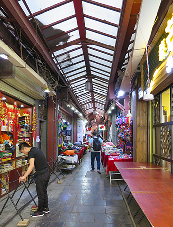 ゲートの奥は回族(イスラム教を信仰する中国人)の人たちが軒を連ねて商売している北広済街だが、南広済街に比べると随分と狭い路地だ。