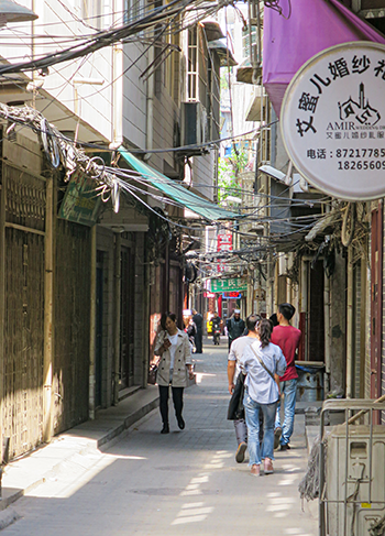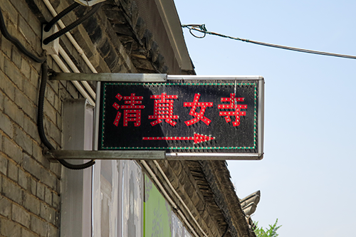 4月27日┃4月28日┃4月29日┃4月30日┃5月1日 5月2日┃5月3日┃5月4日┃5月5日┃5月6日┃地図 回坊│清真大寺│北院門街(回坊風情街)│高家大院│鼓楼│鐘楼 【4月28日(金)晴】北院門街(回坊風情街) 西安清真大寺を出て化覚巷を清真大寺の塀に沿って西進、頭の上の方に「清真女寺」の赤いイルミネーションを発見。矢印に従って細い路地に入る。