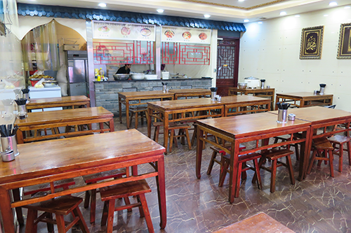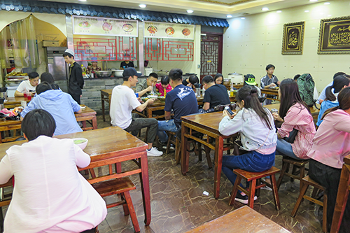 路地を出たところは西羊市街でちょうど昼時、目の前の「老回回」の看板の店に入いる。看板の「老回回」の上に「清真」とあるから回坊に数多いハラール(イスラム法に適した食材・調理方)を守った食堂だ。