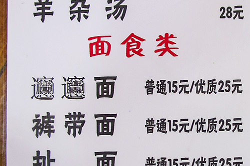 ここのメニューにもあの字を使った麺があった。