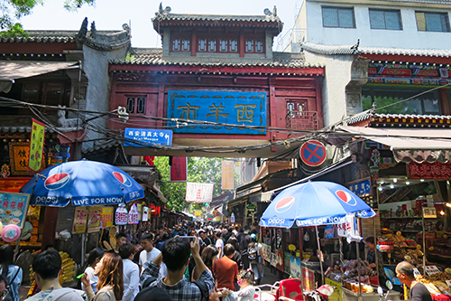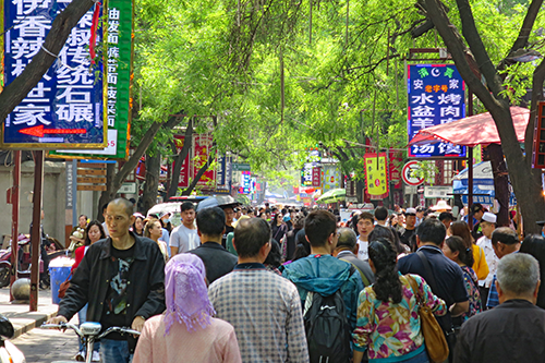 老回回でノンビリ腹拵えして、人混みに背中を押されるようにして西羊市街から北院門街(北院門回坊文化風情街)に出る。