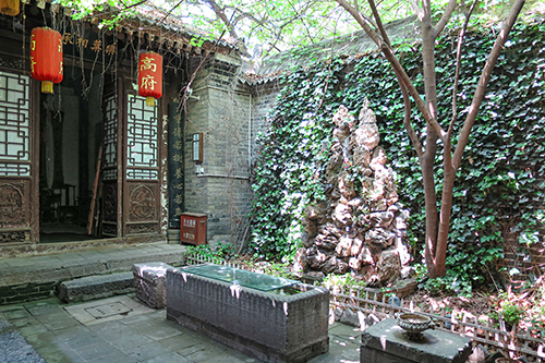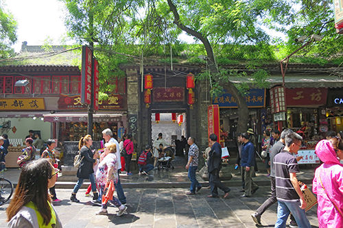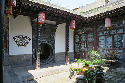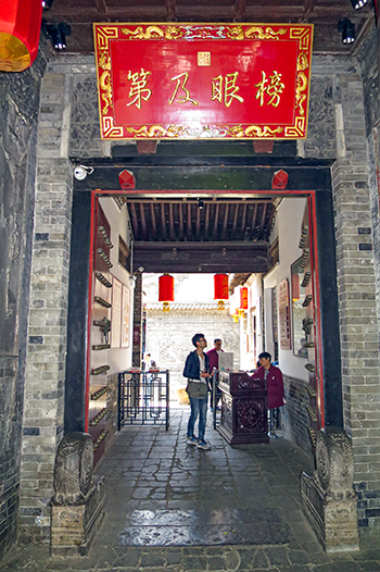 4月27日┃4月28日┃4月29日┃4月30日┃5月1日 5月2日┃5月3日┃5月4日┃5月5日┃5月6日┃地図 回坊│清真大寺│北院門街(回坊風情街)│高家大院│鼓楼│鐘楼 【4月28日(金)晴】高家大院 回族の食堂や土産物店の間に挟まってポッカリ穴が明いたような空間、赤地に金色で「榜眼及第」と刻んだ大きな扁額を掛けた門が見える。