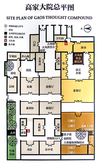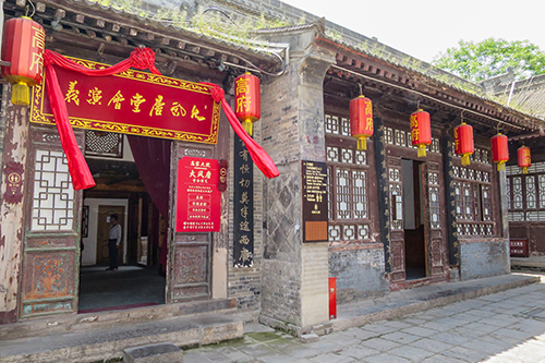 小さな中庭を夾んで北客坊の向かい側は赤地に金色で「大風唐堂会演義」と刻んだ扁額を掛けた、皮演劇(影絵劇)を上演する劇場「大風唐堂会演芸区」。その右隣は食客が滞在した南客坊。