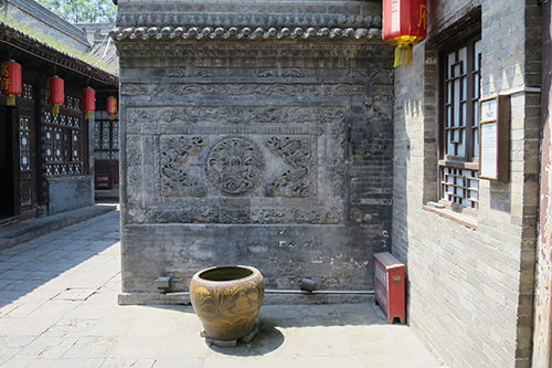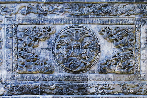 門を入ると目の前に人魚とおぼしき浮き彫りが施された照壁が立ち塞がる。