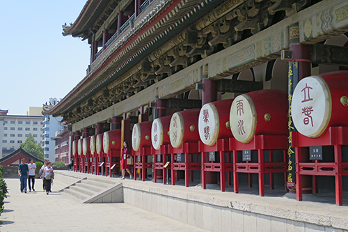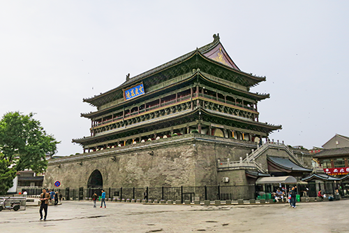 北院門街が尽きて鼓楼の真ん前に出る。周囲は鐘楼に続く鐘鼓楼広場になっている。