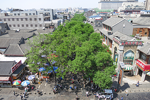 鼓楼の北側に奥まで続く並木の下は今歩いてきた北院門街(回坊風情街)。