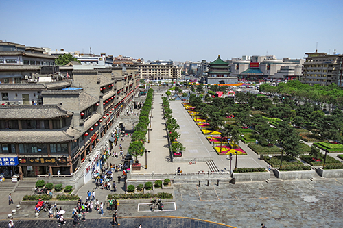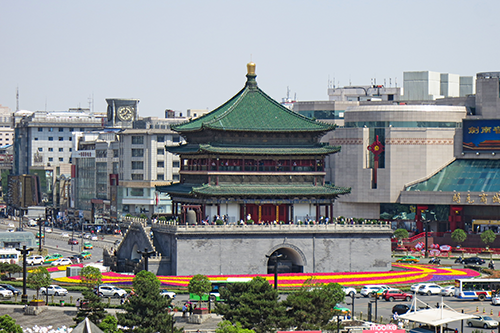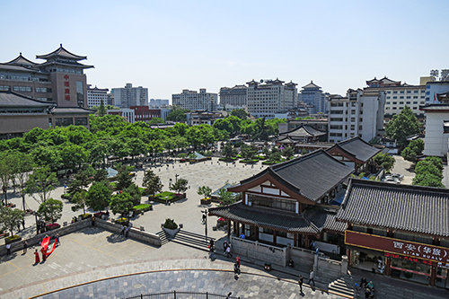 東側には鐘鼓楼広場が広がり、奥に鐘楼が見える。