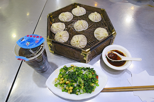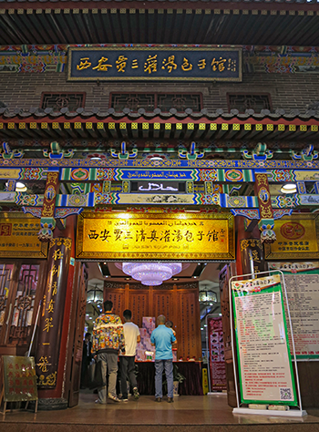 お目当ては北院門街にある「賈三灌湯包子館」、大きな店構えだ。
