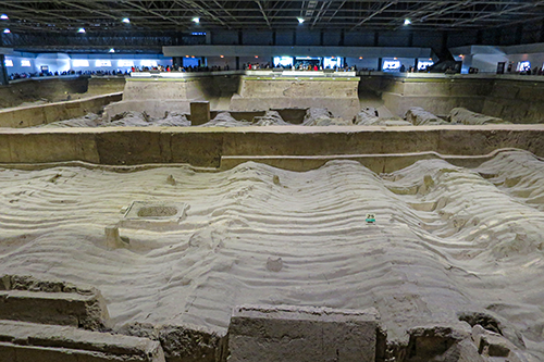 | 二号坑はほぼこんな感じで兵士俑の並ぶ姿は見られない。 |