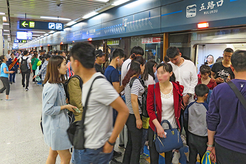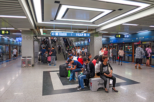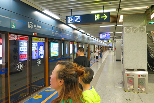 中国の地下鉄駅は西安に限らずどの都市の地下鉄も日本以上にホームドアの導入が進んでいる。