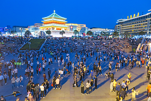 食事を終わっても未だ午後8時前、特別なイベントがあるわけでもないのに鐘鼓楼広場には若い人たちが溢れている。