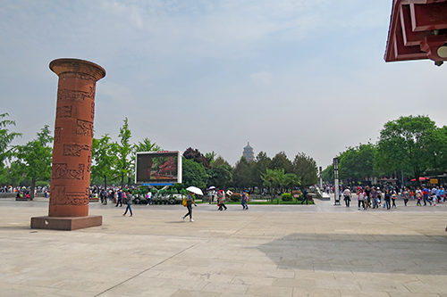 美術館前から反転、雁塔南路を北上、慈恩寺の西側を通って大雁塔北広場に戻り帰りのバス停を見つける。