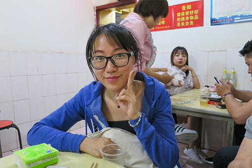 時間になるのでロビーで待っているとEthernet Cableを探して買ってきてくれたという月月さん(Yueyue/愛称)と孫さんが現れた。月月さん、孫さんが先生をしている西北大学芸術学院の生徒だと紹介してくれた。