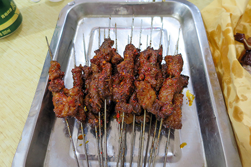 羊の串焼きは北京や上海でもずいぶん食べているがこの店の串焼きは瀋陽で食べたモノとほぼ同じ味。