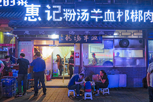 食べきれなかった燻製ホルモンを持って羊血豆腐(正しくは何という名前なのかは不明)の店「恵記」へ徒歩移動。この店も孫さんのお気に入り。