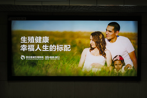 各メッセージの下に小さな字で「西安蓮湖生殖医院」とあるが、産科病院の広告なのだろう。 |