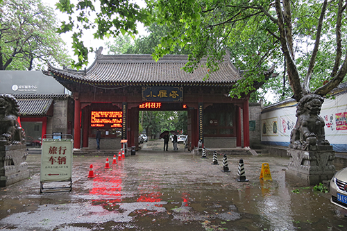 | 「小雁塔」の扁額がかかる薦福寺の山門。 |