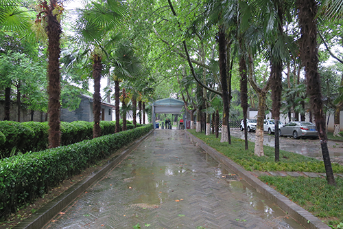 | 西側の塀に相手通用門と編み笠屋根の西安博物院。 |
