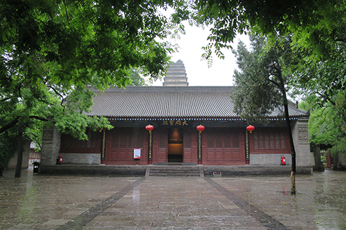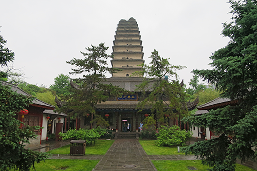 大雄宝殿を出ると目の前に三秦芝光と小雁塔が重なっている。