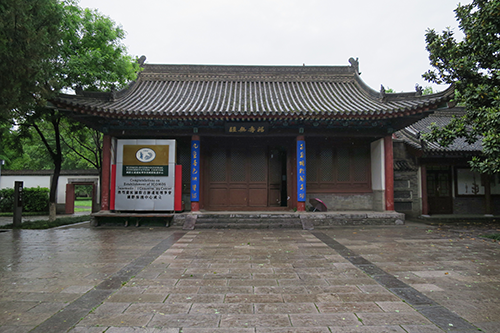 四基の石碑塔の奥が清代に建てられた薦福寺の正殿「大雄宝殿」で、説明板によれば、ここに釈迦牟尼仏が祀られている。