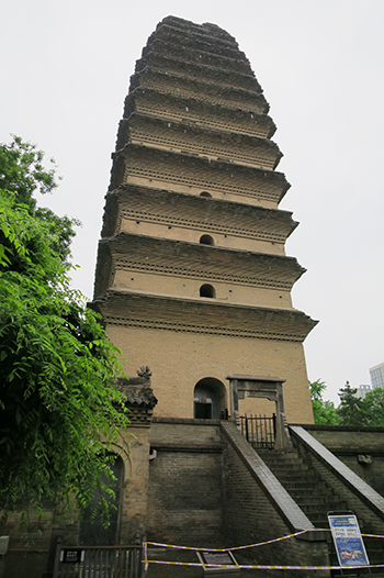 小雁塔は大雁塔が建てられて半世紀後、唐の景龍元(707)年に創建された。正式な名称は薦福寺塔だが形や構造が大雁塔より小ぶりなことから小雁塔と呼ばれるようになった。