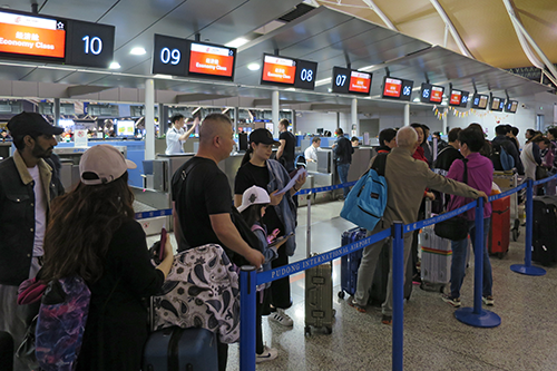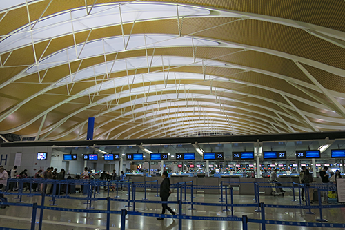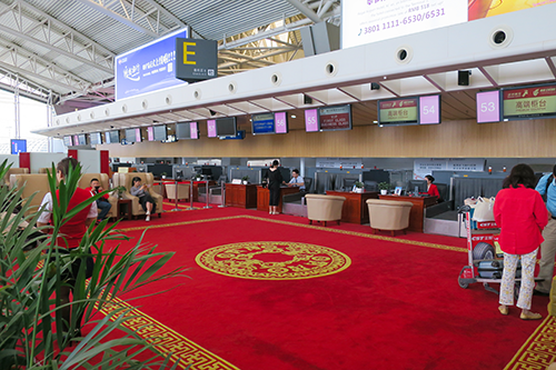 中華国際空港のチェックイン・カウンターが初めてのスタイルで印象的。