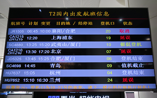 場内放送が聞き取りにくくて不確かだが、上海国際空港、北京国際空港が共にトラブルで、全てのフライトに大幅な遅れが出ている模様。