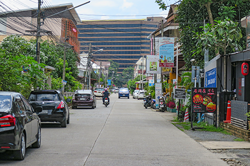 ホテルの前の道路ニマンヘミン・ソイ 17(Nimmana Haeminda Rd. Lane 17)を東に、シリ・マンカラヤーン通り(Siri Mangkalajarn Rd)に出て左折。最初の十字路で右折してシリ・マンカラヤーン・ソイ7(Siri Mangkalajarn Rd. Lane 7)に入る。